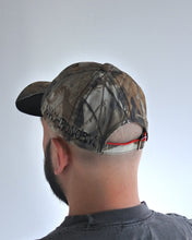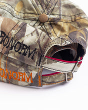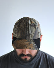 オリジナルリアルツリー生地のキャップに黒色の生地を切り替え配色にしたデザインキャップ
