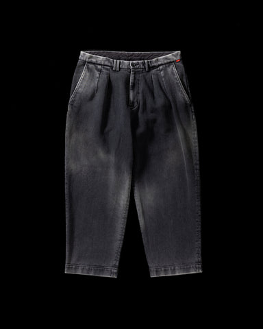 AN398-W AGING HEAVY PIQUE 2 TUCK WIDE TROUSERS BLACK (AGING)