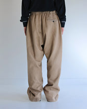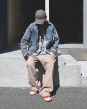 弱スラブ糸で織り上げた太畝ツイルデニムは、ふっくらとした質感と自然なストレッチ性が特徴で、ベージュカラーが上品な印象を与えます。