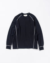 本体とは異なるカラーのステッチを配色としてデザインした中肉のワッフルロンTです。