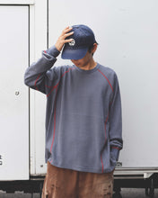 本体とは異なるカラーのステッチを配色としてデザインした中肉のワッフルロンTです。