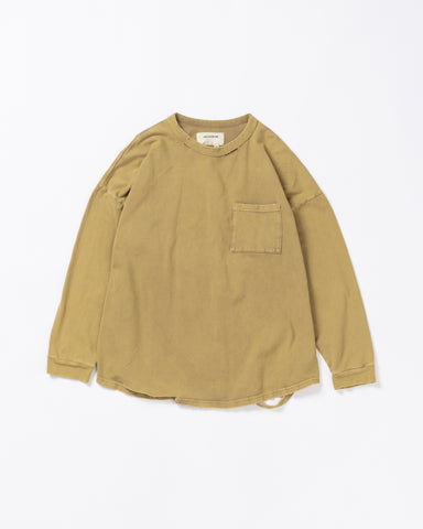 AN379-D MOSS STITCH DAMAGED POCKET L/S T-S BROWN