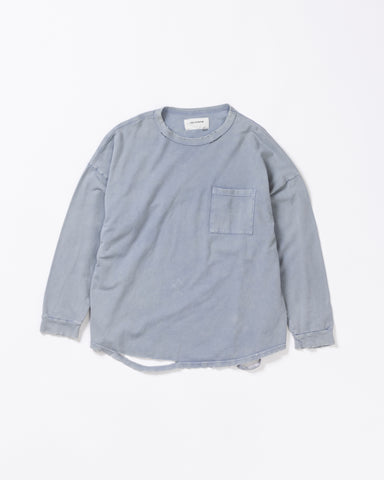 AN379-D MOSS STITCH DAMAGED POCKET L/S T-S BLUE GRAY