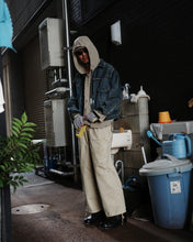 As the distressing and remaking are applied by hand, each piece features a unique, one-of-a-kind finish. Due to the use of indigo dye, please be careful of color transfer during washing. ANACHRONORM intentionally avoids anti-rust treatments on the hardware to express authentic aging. This is a design specification intended to create a natural vintage aesthetic through the raw texture of oxidation.