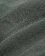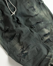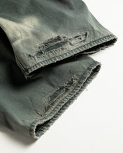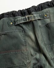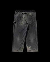 本製品は、レングスをやや長めに設定したブラックカラーのペインターパンツです。ウエスト部分にはナイロンオックス生地で切り替えを施し、ワーク感を抑えつつバランスの良いデザインに仕上げています。生地には頒布の中でも最も薄手の11号帆布生地を使用しており、強度・耐久性に優れるだけでなく、着用を重ねるごとにアタリなどの経年変化を楽しめる素材です。また、水や薬品の使用量を抑えながら生地の凹凸部分のアタリを強調し、同時に自然な脱色感を与える特殊エイジング加工に加え、サンフェードによるダメージ加工も施すことで、より味わい深い表情に仕上げています。