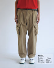 斜めに配置されたカーゴポケットが印象的なディテールとなっており、立体感と実用性を兼ね備えています。