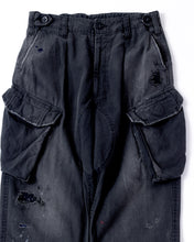 REMAKED HERRINGBONE COMBAT CARGO TROUSERS BLACK